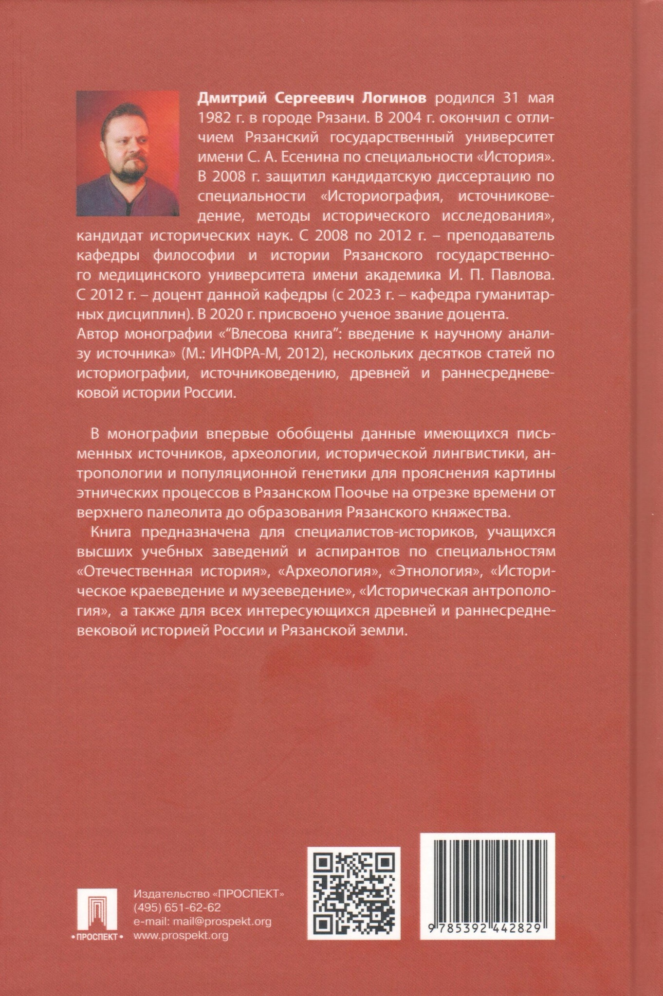 В монографии впервые обобщены данные имеющихся письменных источников, археологии, исторической лингвистики, антропологии и популяционной генетики для прояснения картины этнических процессов в Рязанском Поочье на отрезке времени от верхнего палеолита до образования Рязанского княжества.
