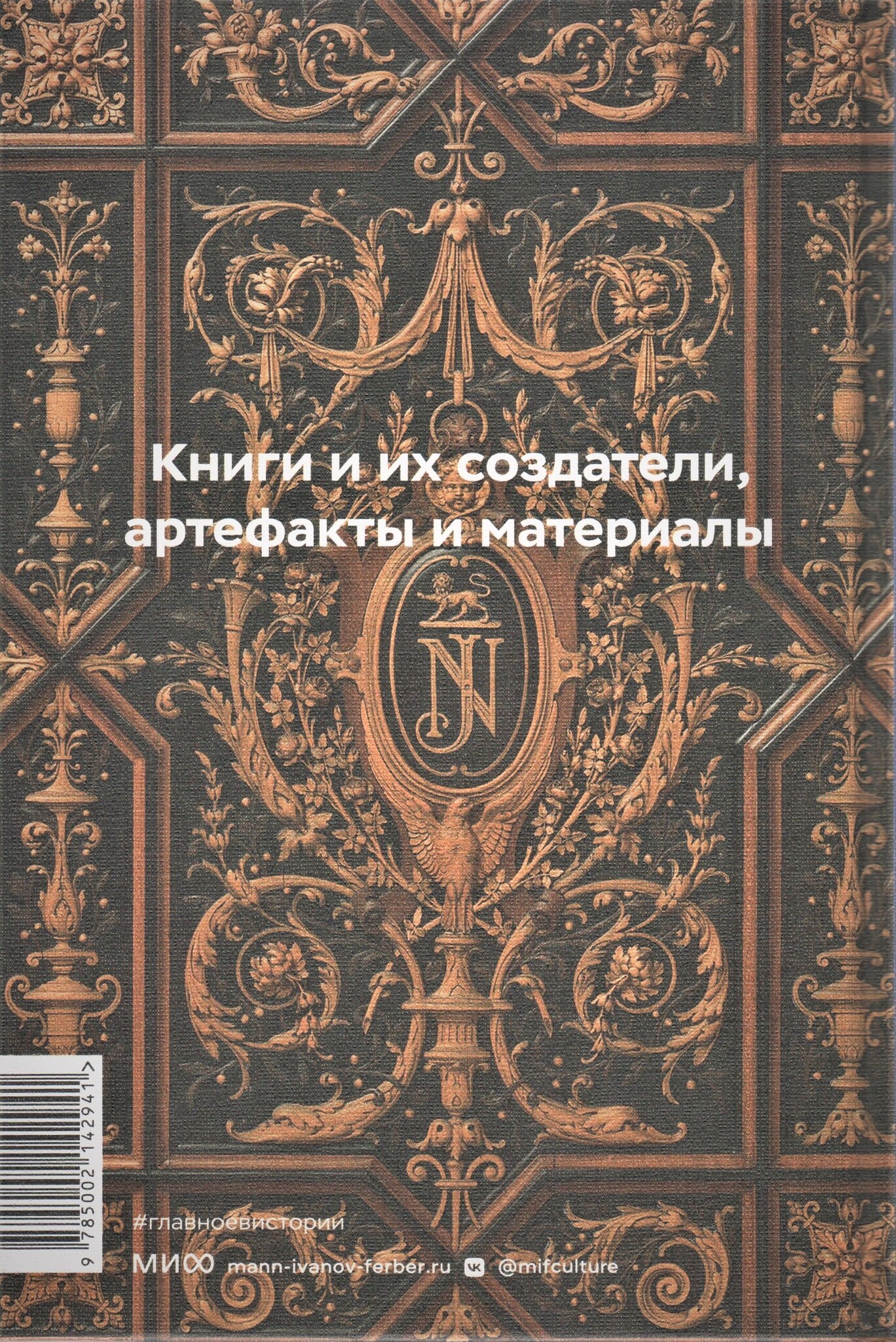 Книга делится на четыре части. Первая часть посвящена вехам истории создания книг, вторая — книжным артефактам (книгам и свиткам), в третьей авторы рассказывают о бытовании книги, то есть о том, как книги живут и распространяются среди людей (все самое интересное о частных библиотеках, коллекциях, магазинах). Из четвертой части вы узнаете о технологиях (техниках создания иллюстраций, тиражных способах воспроизведения изображений, шрифтах и др.).