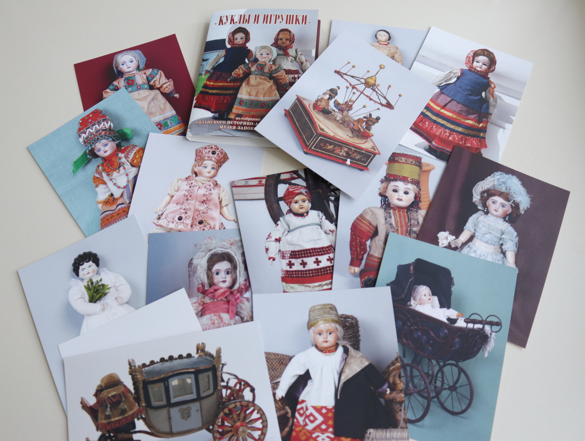Начало музейному собранию кукол и игрушек положил в 1913 г. Кустарный музей Рязанского земства, который после революции стал частью губернского музея (в настоящее время музей-заповедник). Небольшая коллекция кукол в народных костюмах из Кустарного музея – своеобразное «наглядное пособие» по рязанской этнографии. Костюмы эти уникальны: они сшиты и отделаны исключительно вручную, и очень точно передают локальные особенности рязанской крестьянской одежды.