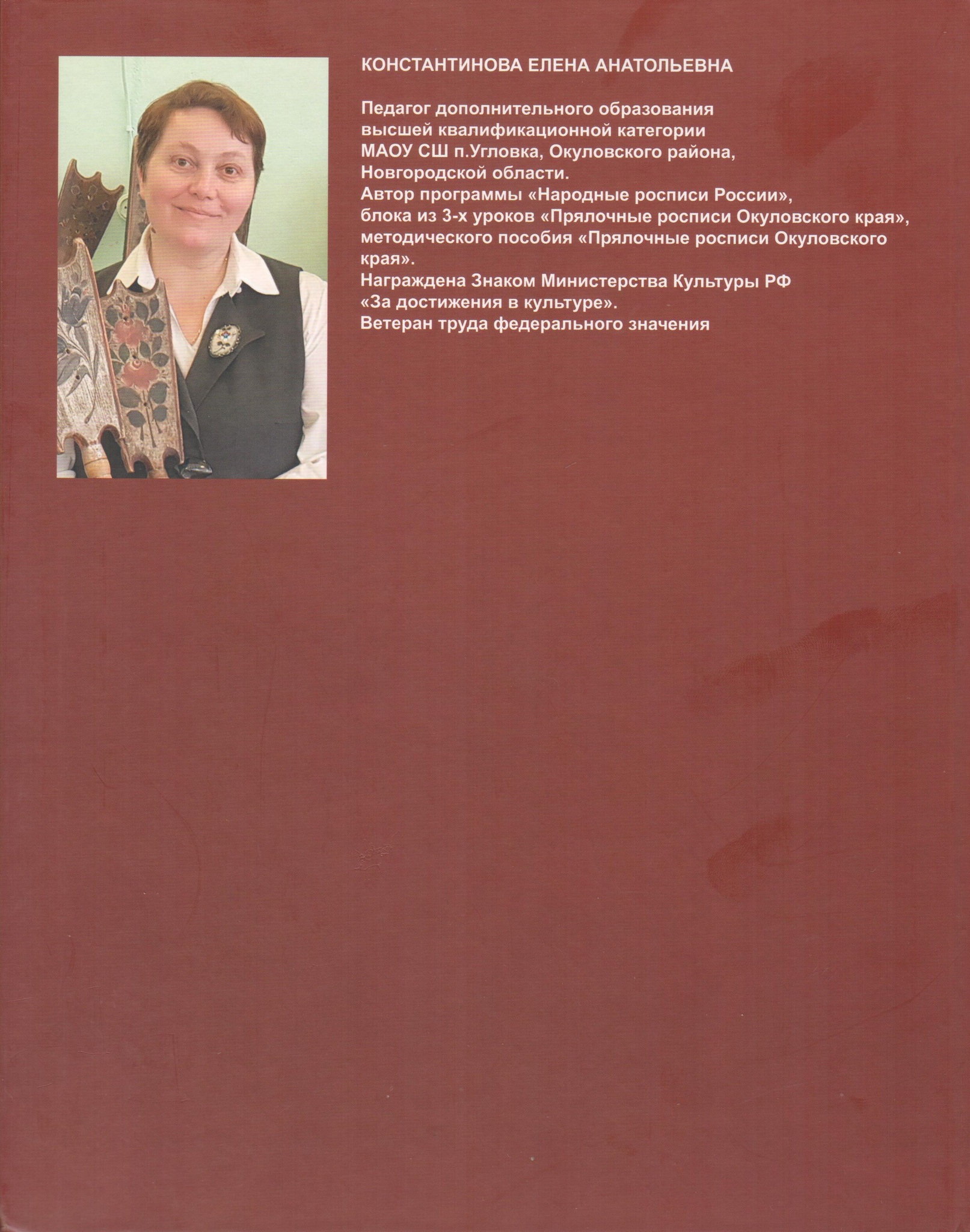В книге представлены три прялочные росписи – Угловская пальцевая, Новотроицкая, Тёсовская. Дополнительно включены мастер-классы по росписи прялок и предметов декоративно-прикладного искусства.
