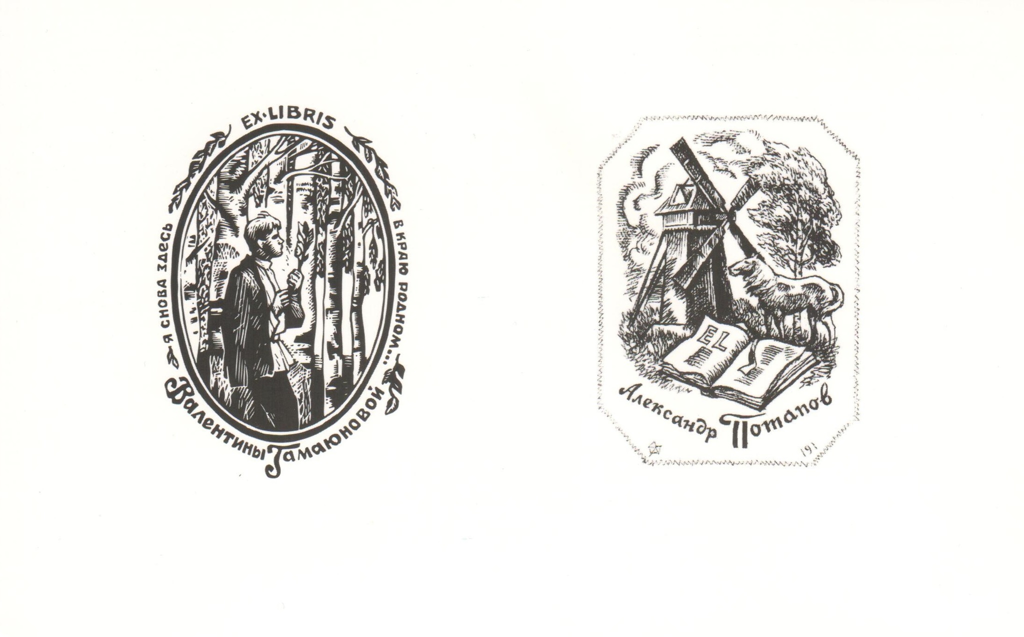 Экслибрисы есенинской тематики можно условно разделить на несколько видов: портретные, сюжетно-тематические, навеянные произведениями поэта, пейзажные - с изображением природы или тех мест, где он жил или бывал, а также такие, которые говорят об увлечениях или профессии владельцев графических миниатюр.