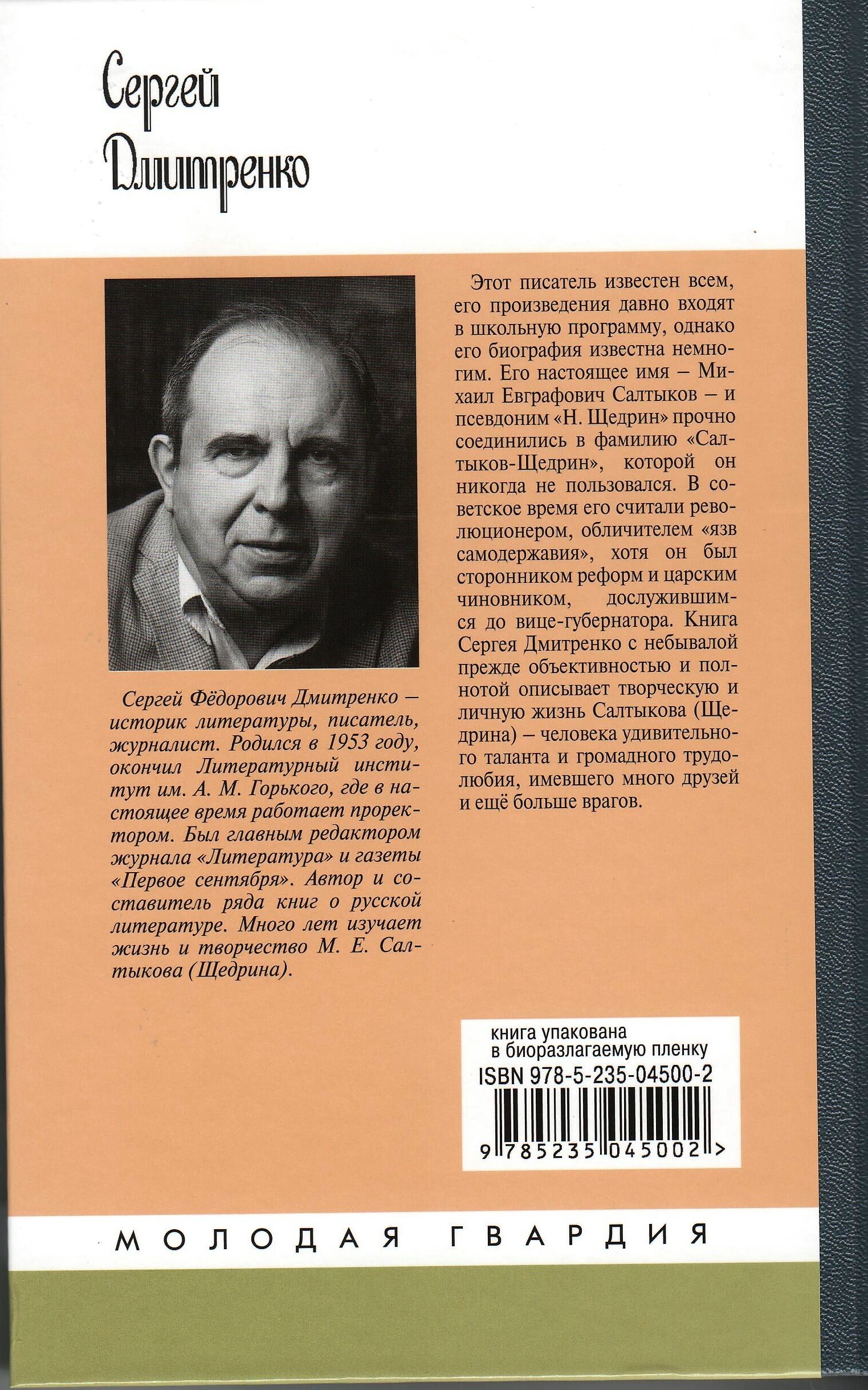 Этот писатель известен всем, однако биография его известна немногим. Его настоящее имя - Михаил Евграфович Салтыков - и псевдоним "Н. Щедрин" прочно соединились в фамилию "Салтыков-Щедрин", которой он никогда не пользовался. В советское время его считали революционером, обличителем "язв самодержавия", хотя он был сторонником реформ и царским чиновником, дослужившимся до вице-губернатора. Книга историка литературы Сергея Дмитренко с небывалой прежде объективностью и полнотой описывает творческую и личную жизнь Салтыкова (Щедрина) - человека удивительного таланта и громадного трудолюбия, имевшего много друзей и ещё больше врагов, искренне любившего свою страну и верившего в её будущее.